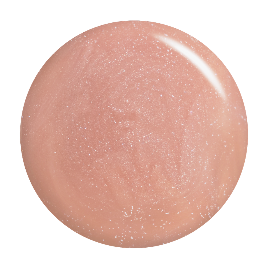 Pale pink with silver shimmer. Semi-sheer. Semi-matte finish. Warm undertone.